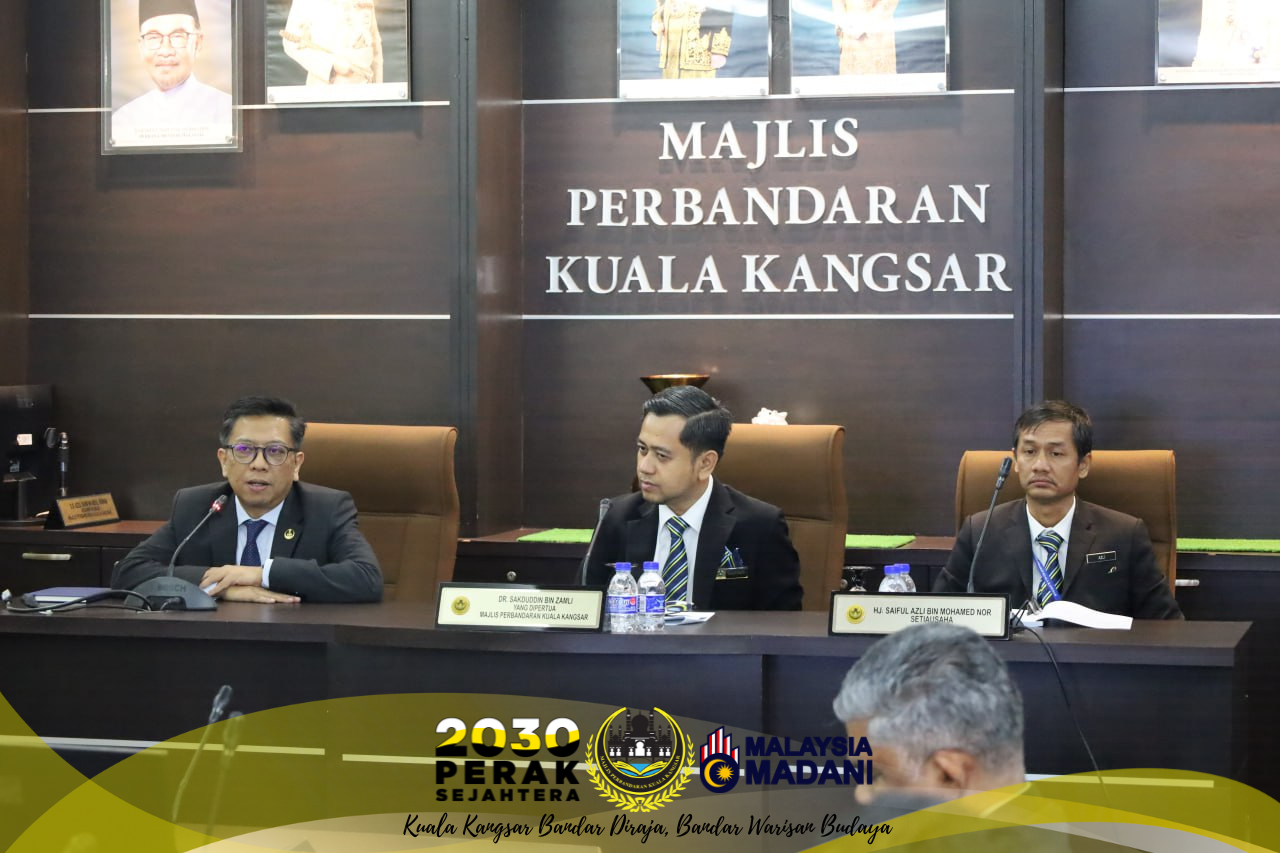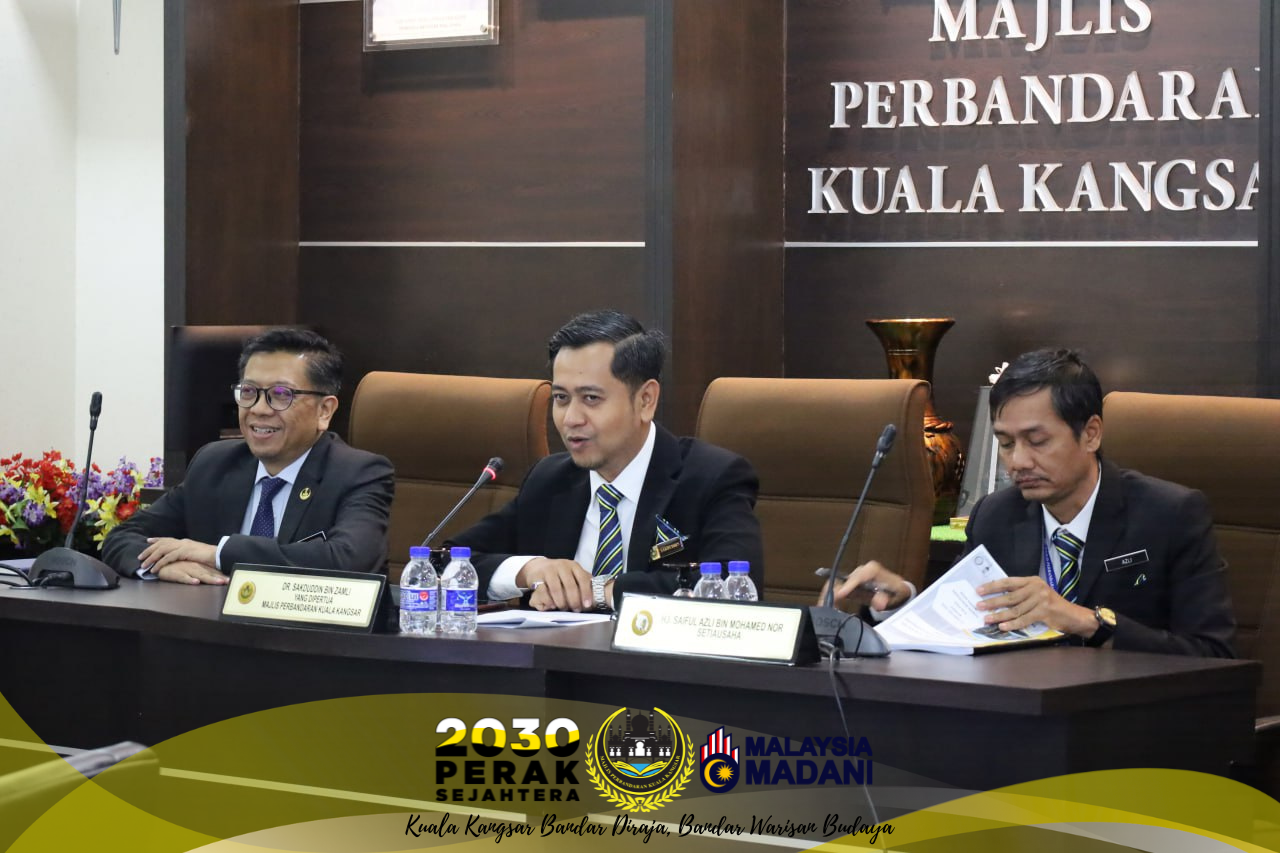 15 Januari 2026, Kuala Kangsar - Sempena Mesyuarat Tujuan Am Bil. 1/2026, Majlis Perbandaran Kuala Kangsar (MPKK) berbesar hati menerima kehadiran Pegawai Daerah Kuala Kangsar, Yang Berusaha Encik Azrul Sani bin Ibrahim bagi sesi suai kenal dan perbincangan bersama Yang Dipertua Dr. Sakduddin bin Zamli dan barisan Ahli-Ahli Majlis MPKK.